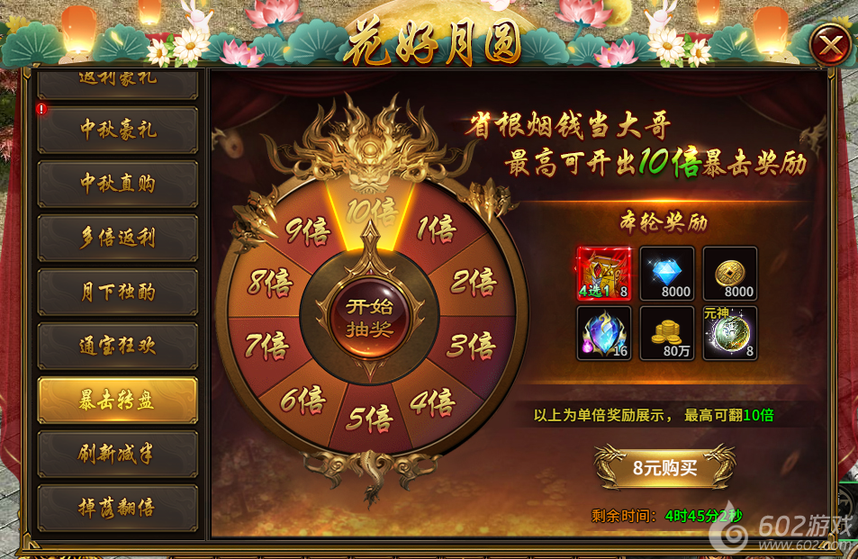 13) 暴击转盘(活动第2-7天且开服天数达到36天开启,直购,总共4档,每日重置):