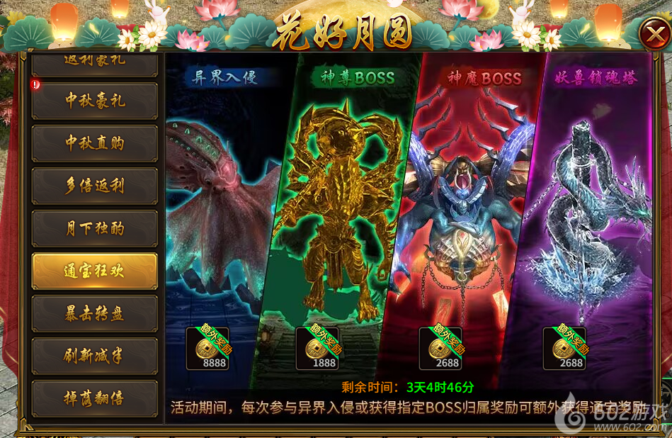 2. 花好月圆活动(2025年10月4日-2025年10月10日开启,且开服天数不低于8天):